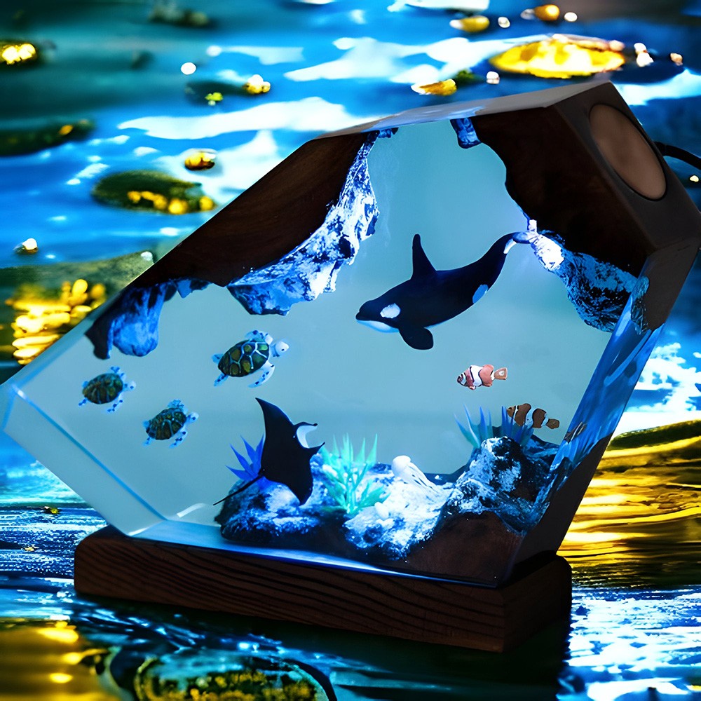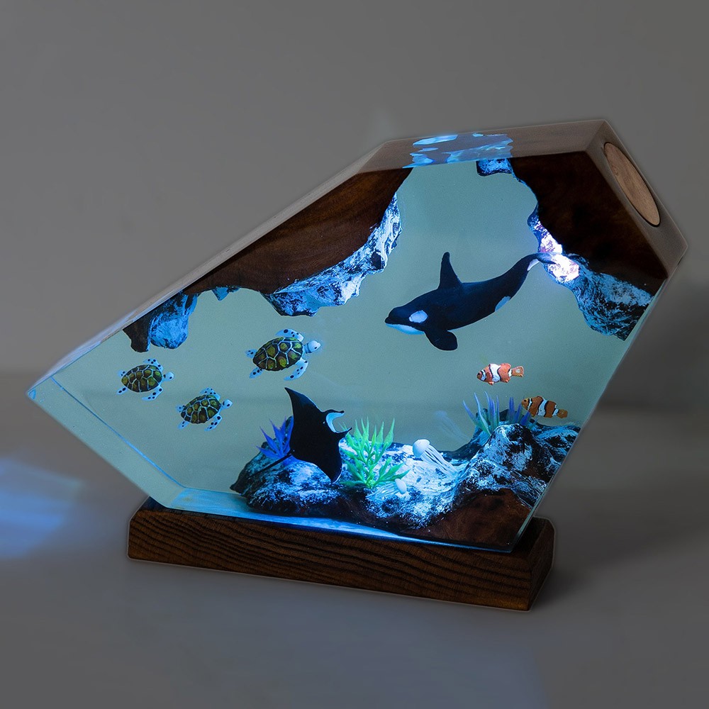 Orcak- und Taucher-Nachtlichter aus Kunstharz – Buckelwal-Kunstharz-Ozeanlampe – handgefertigte Wohndekoration, rustikales Epoxidharzholz, Weihnachtsgeschenk