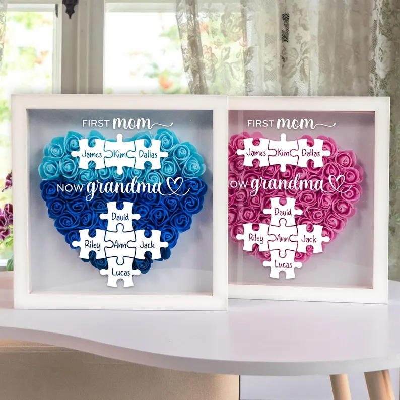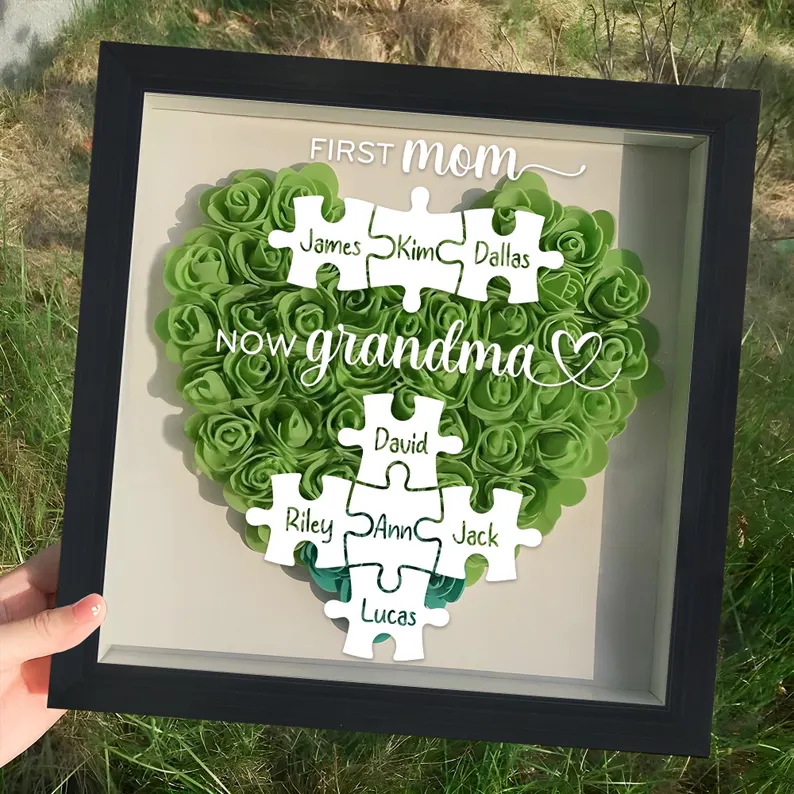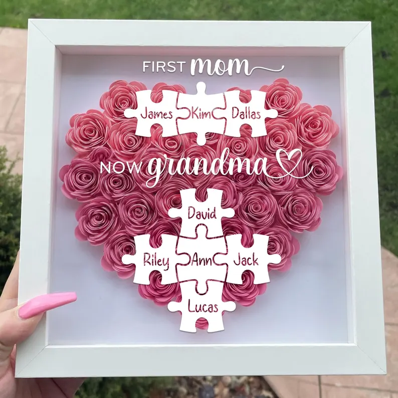 Personalized Mom Flower Shadow Box With Kids Name For Mother's Day