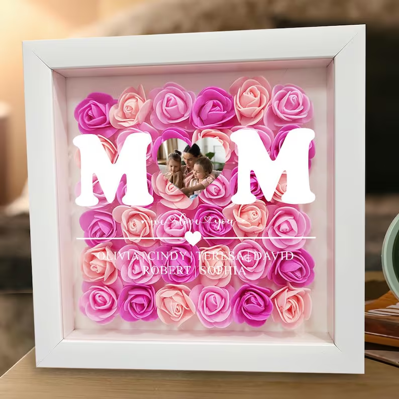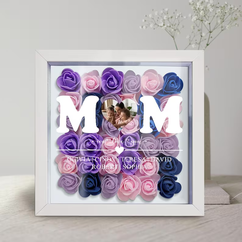 Personalized Mom Flower Shadow Box With Kids Name For Mother's Day