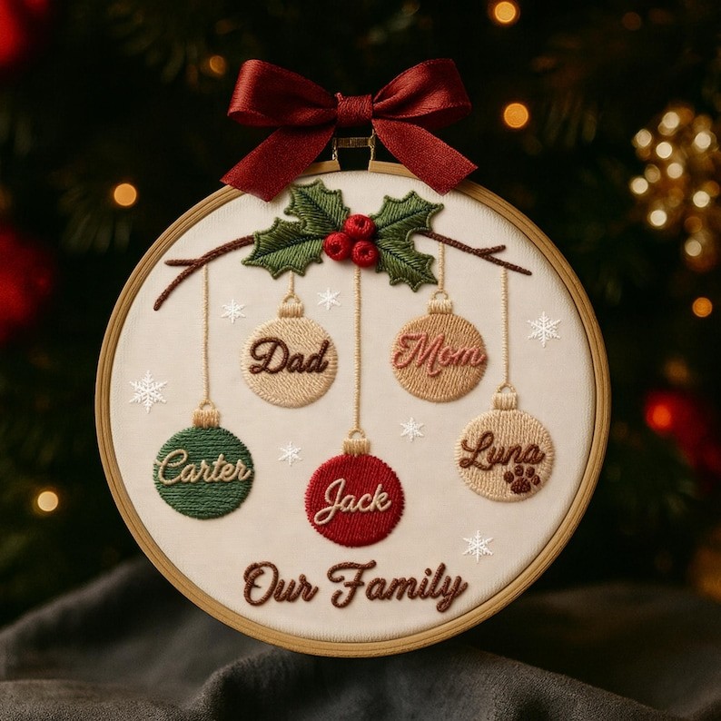 Personalized Embroidery Family Christmas Ornament Gift for Families 2025