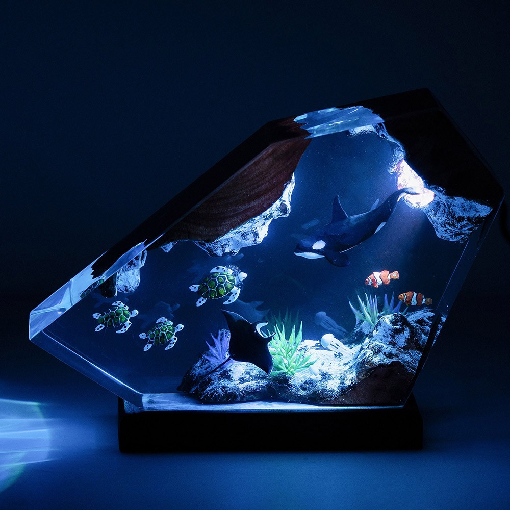 Explore nuestras últimas luces nocturnas de resina, con impresionantes escenas submarinas. Sumérgete en el fascinante mundo de dos buzos que se encuentran con dos tiburones majestuosos de ballenas en medio de un vibrante paisaje submarino. A continuación, un naufragio descansa sobre una costa arenosa rodeada de arrecifes de coral animados, formando un cuadro cautivador. Este producto versátil es un regalo reflexivo para padres, novios, novias, cumpleaños y celebraciones navideñas. Sumérgete en la belleza de nuestras luces nocturnas de resina hoy.