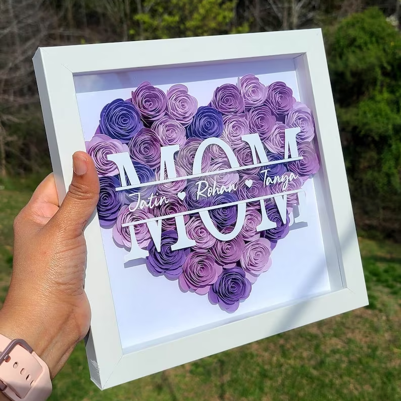 Personalized Mom Flower Shadow Box With Kids Name For Mother's Day
