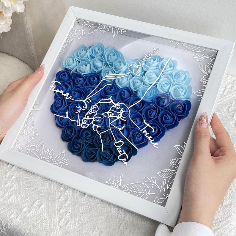 Personalized Mom Flower Shadow Box With Kids Name For Mother's Day
