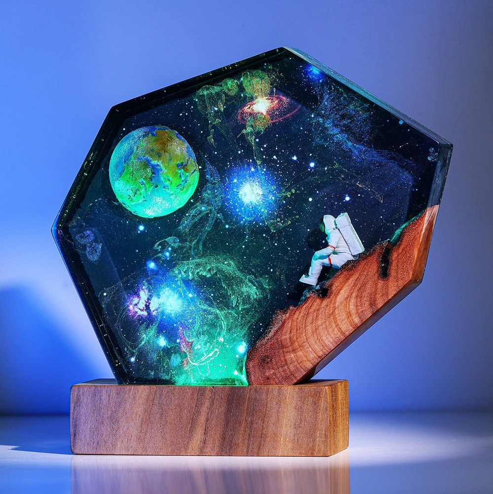 Veilleuse en résine et bois Space Galaxy Lampe époxy interstellaire