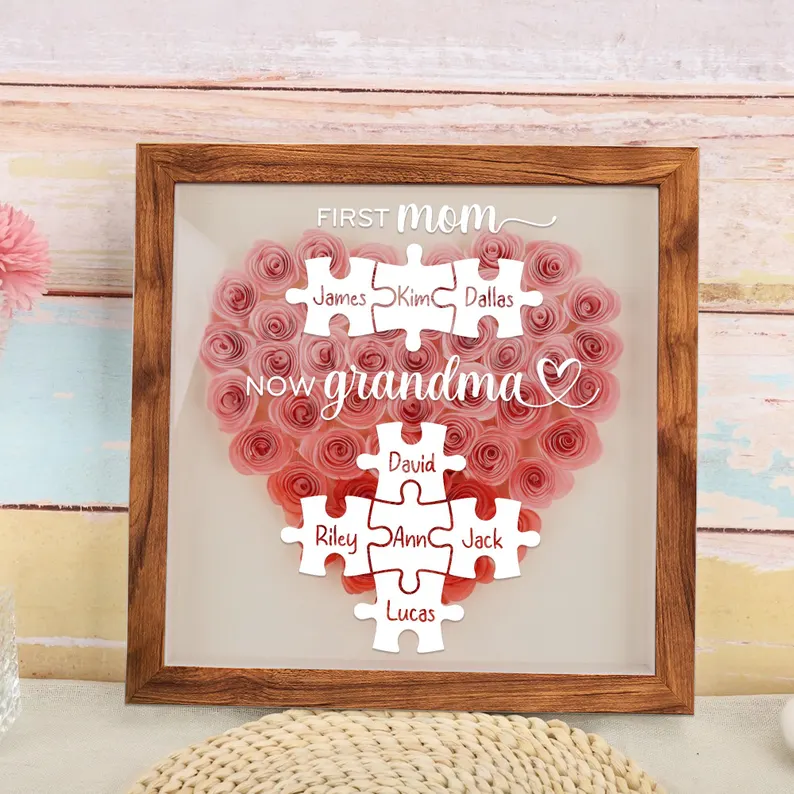 Personalized Mom Flower Shadow Box With Kids Name For Mother's Day