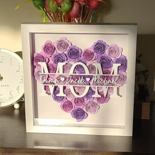 Personalized Mom Flower Shadow Box With Kids Name For Mother's Day