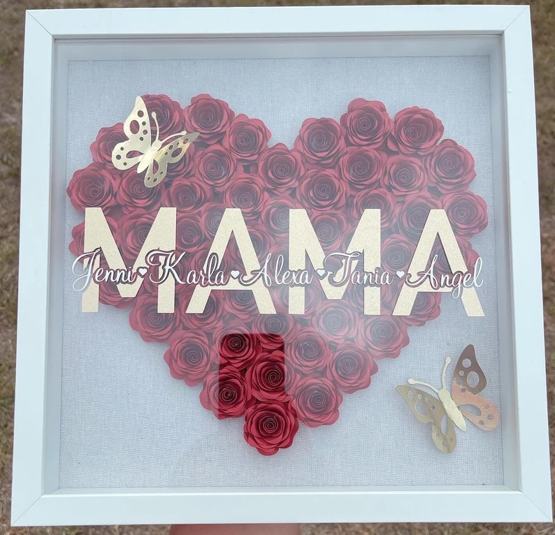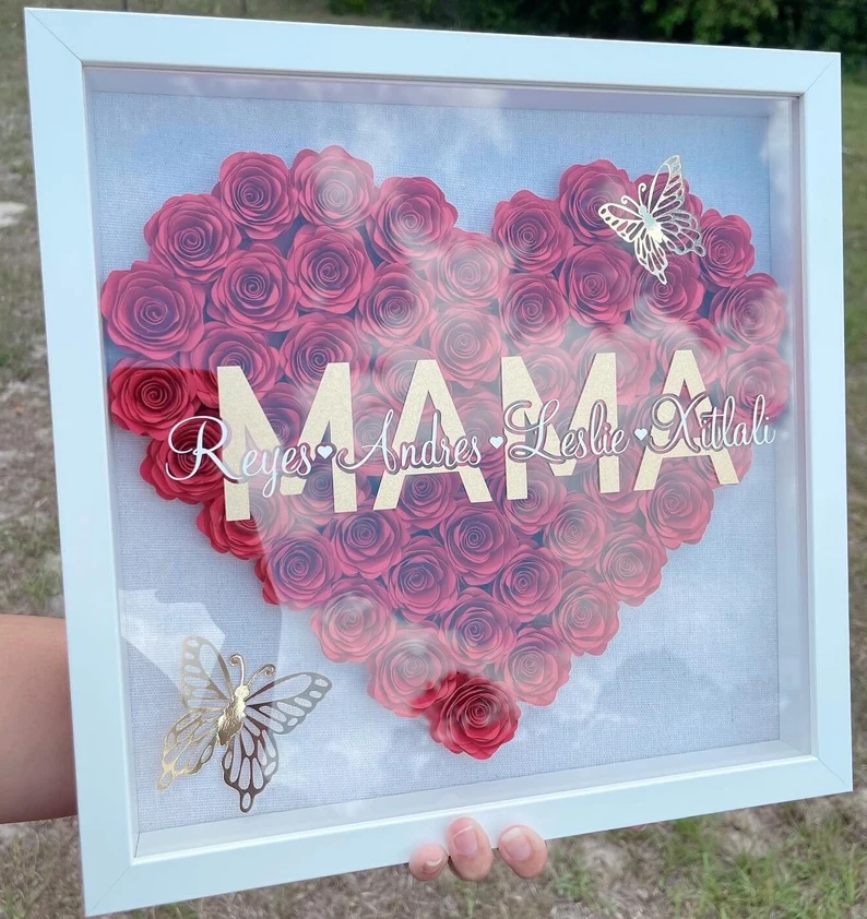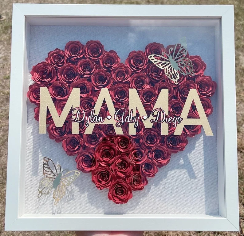 Personalized Mom Flower Shadow Box With Kids Name For Mother's Day