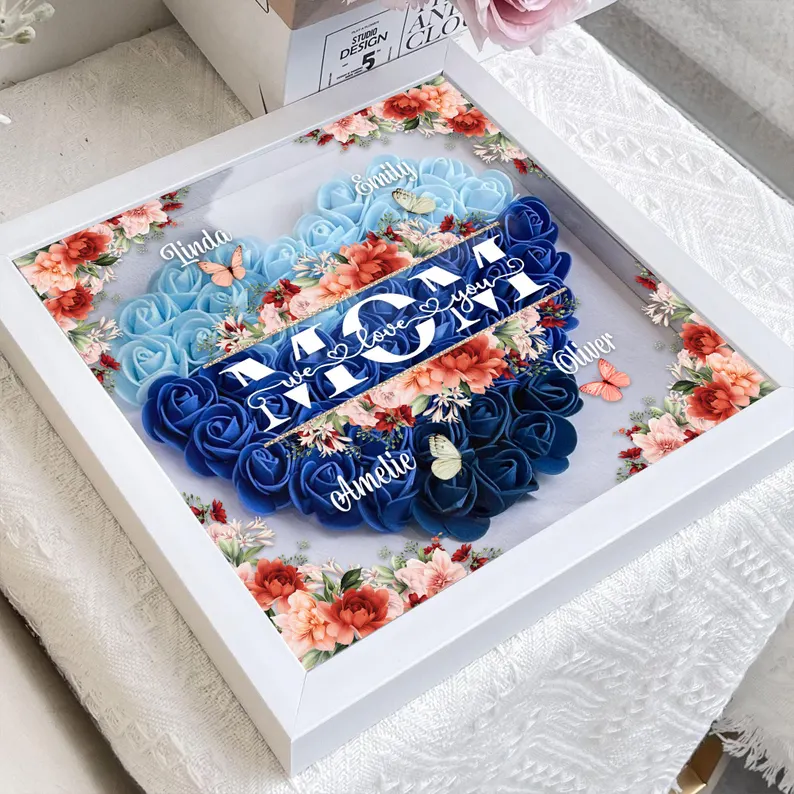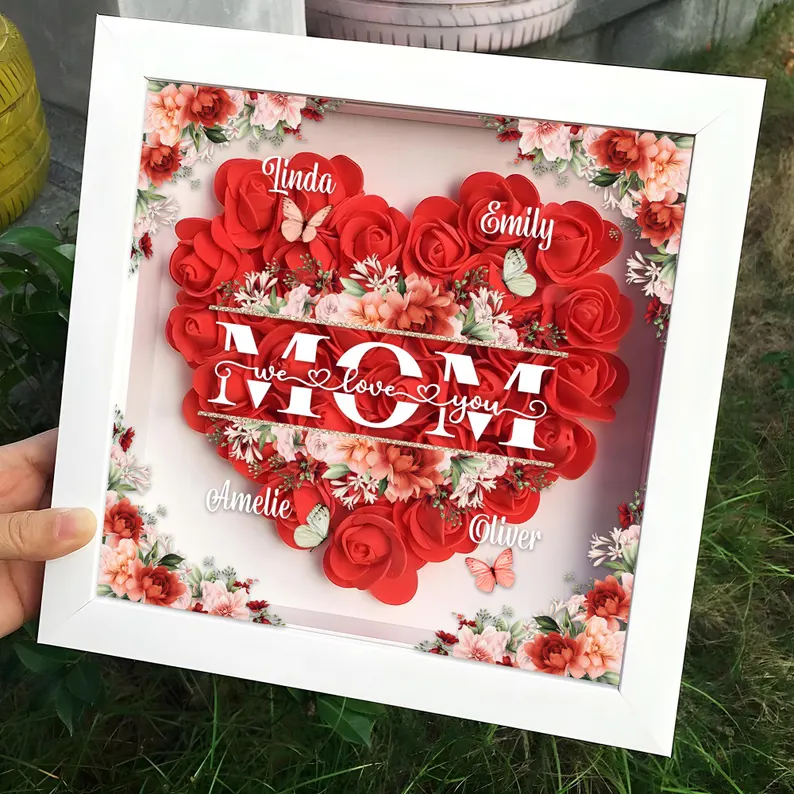 Personalized Mom Flower Shadow Box With Kids Name For Mother's Day