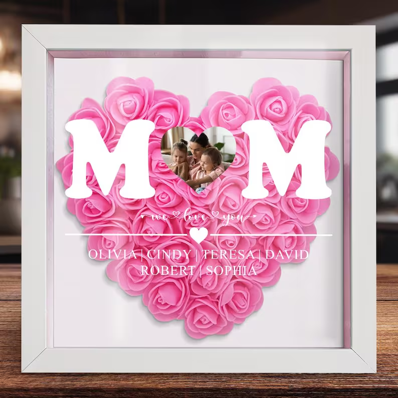 Personalized Mom Flower Shadow Box With Kids Name For Mother's Day