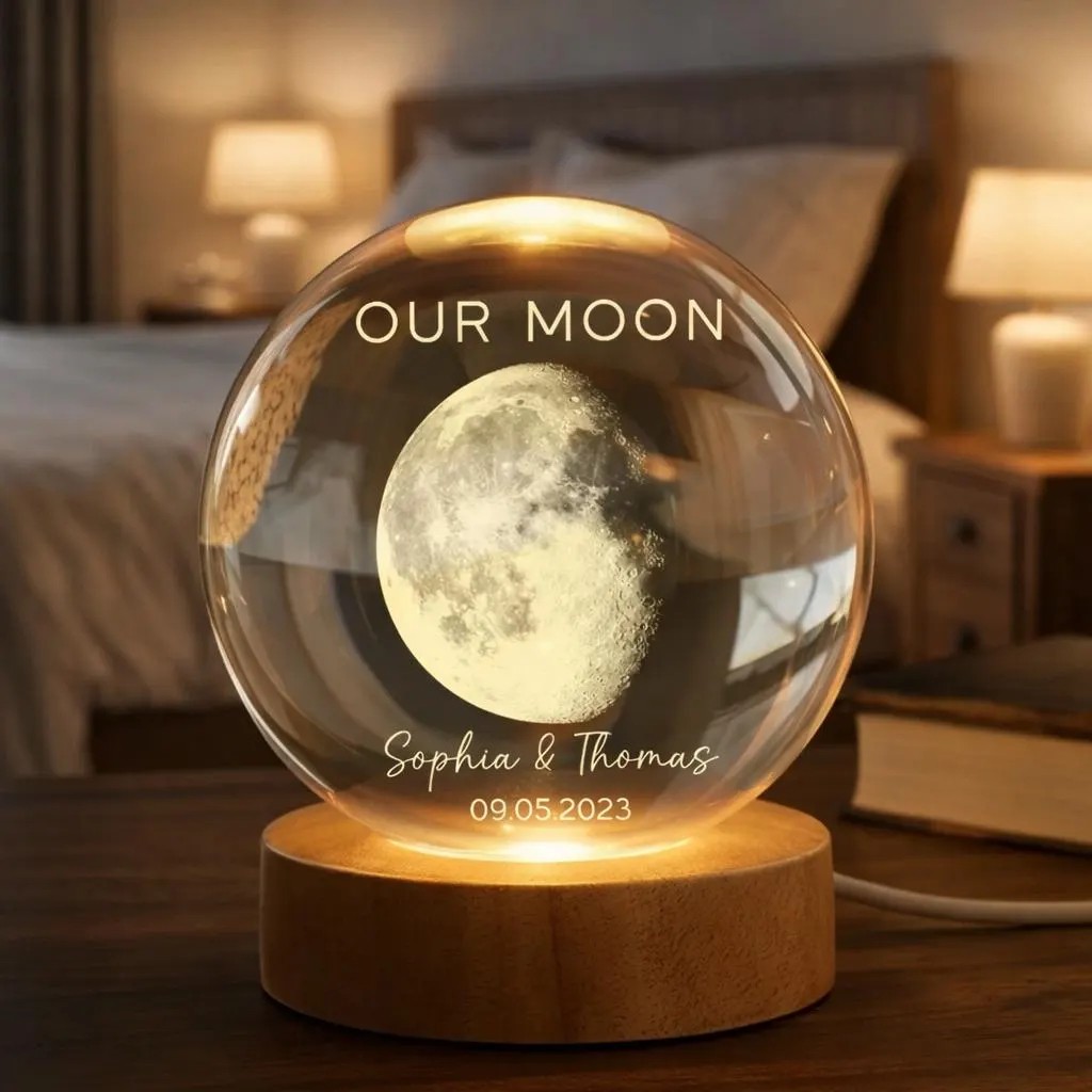 Our Moon Personalized Moon Phase Crystal Ball LED Night Light – Custom Valentine's Day Gift for Couples