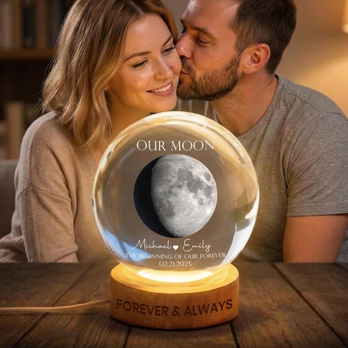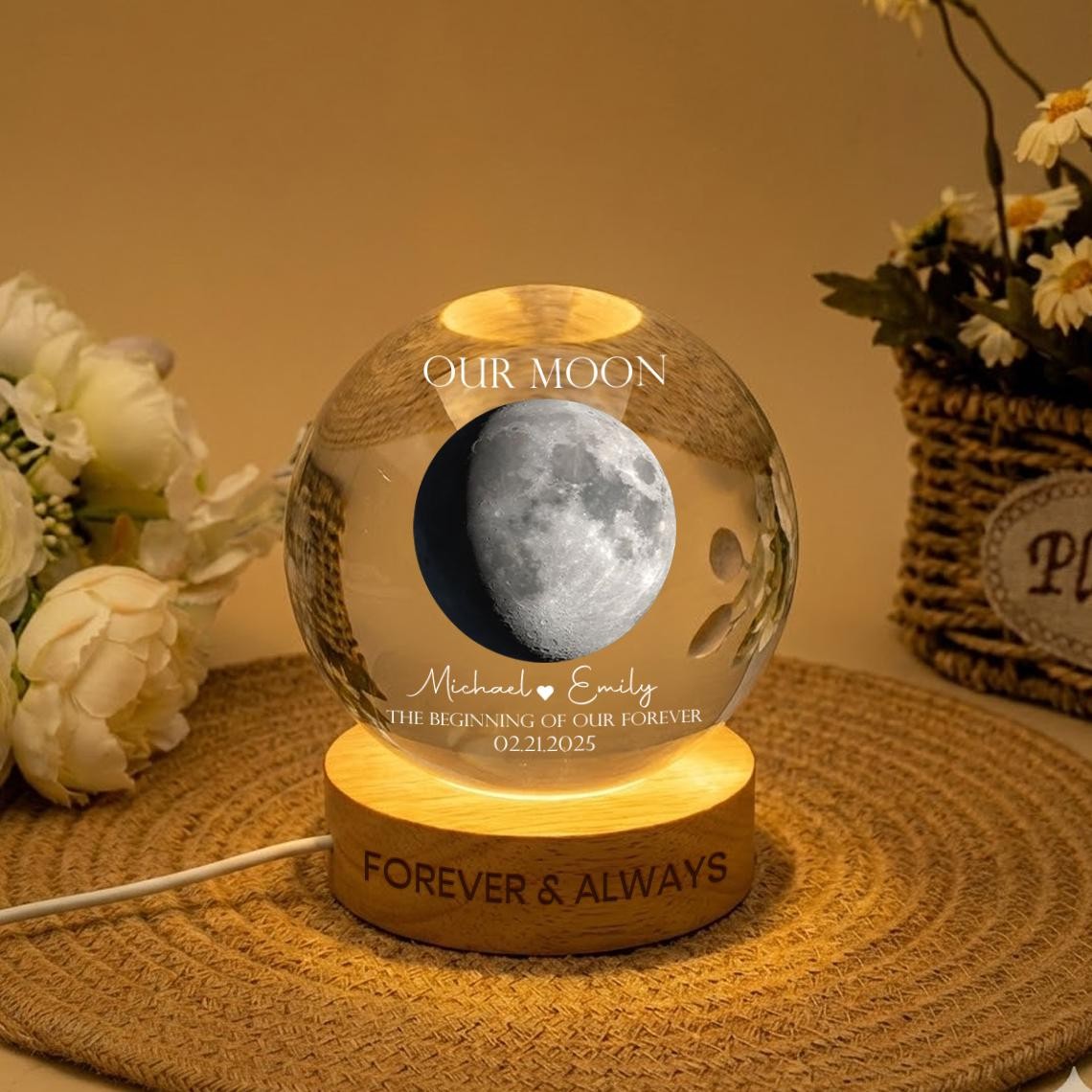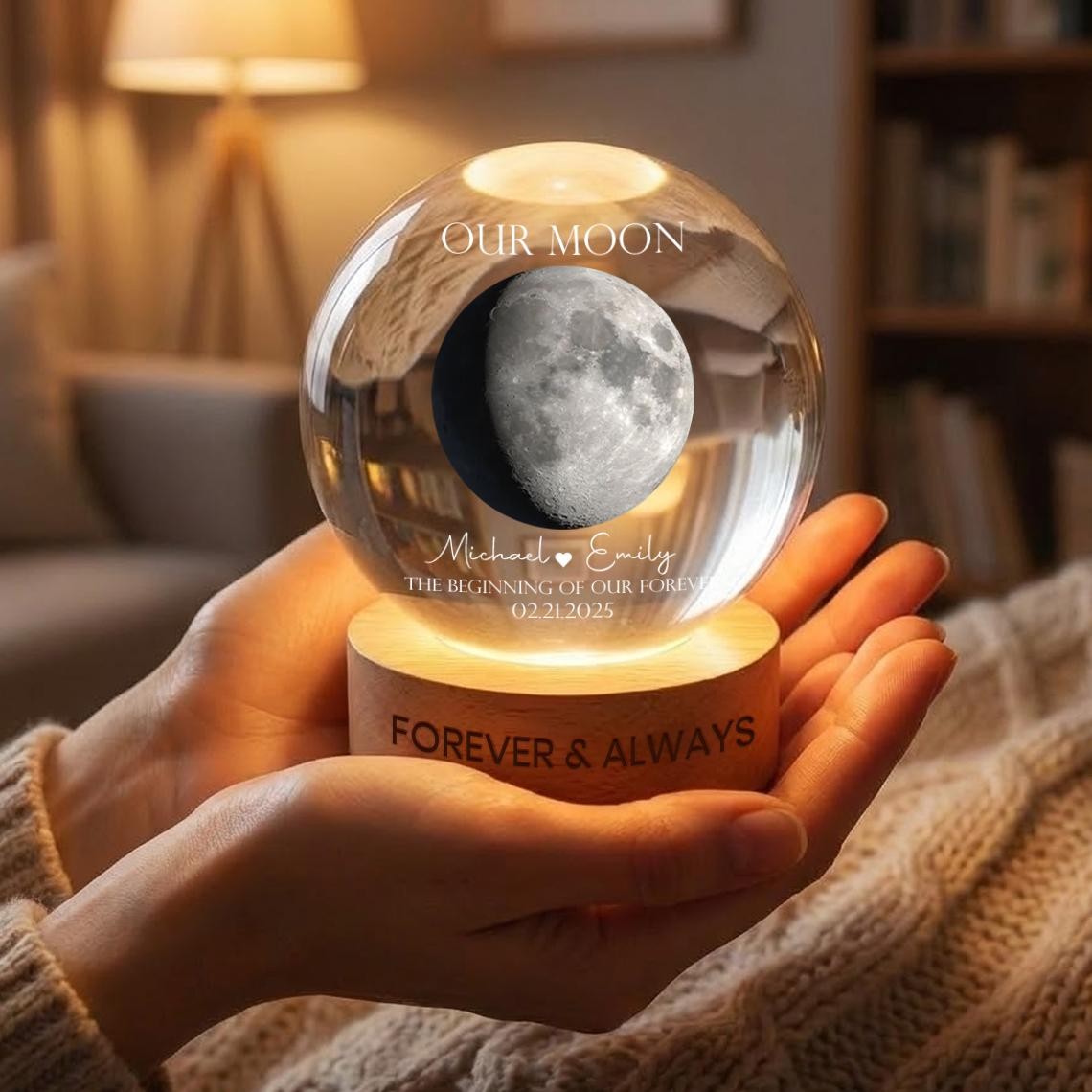 Our Moon Personalized Moon Phase Crystal Ball LED Night Light – Custom Valentine's Day Gift for Couples