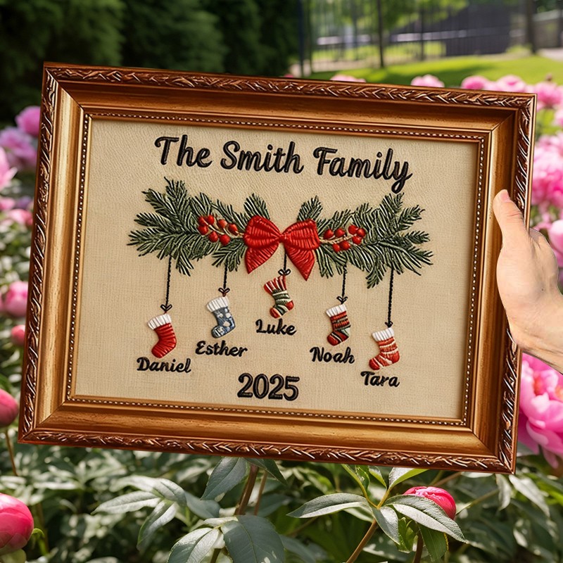 Personalized Embroidery Family Wood Frame Christmas Gift