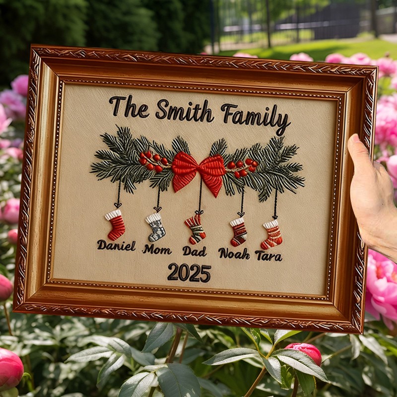 Personalized Embroidery Family Wood Frame Christmas Gift